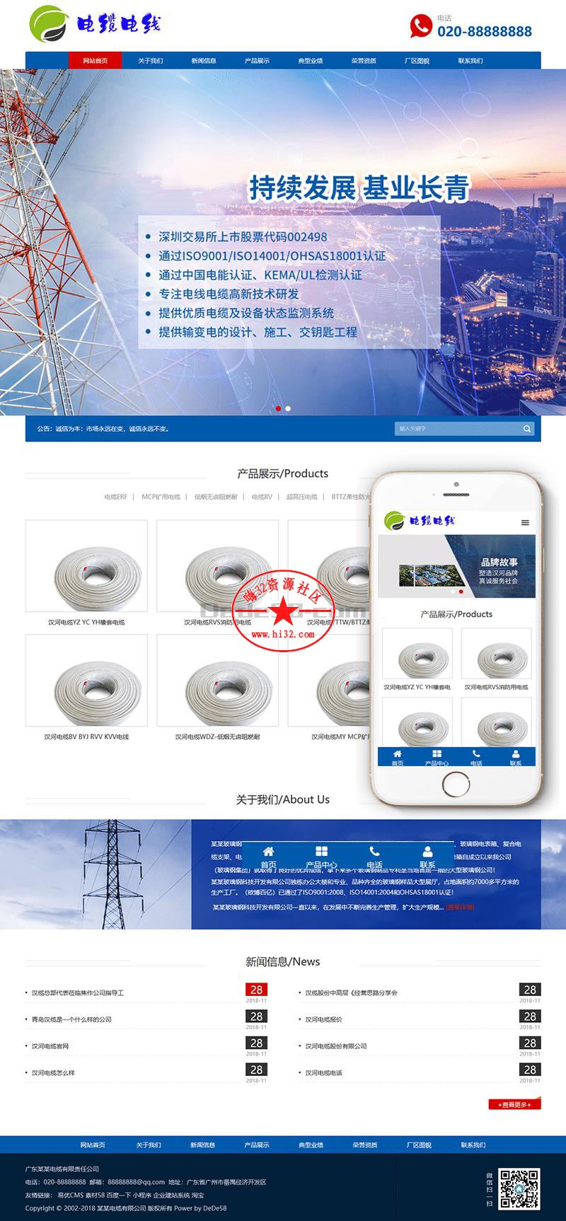 响应式电缆电线类网站织梦模板(自适应手机端)+PC+wap+利于SEO优化