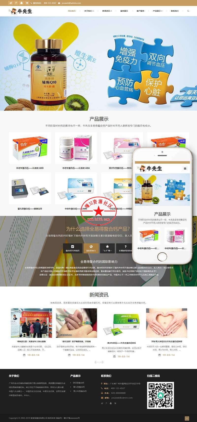 钙片保健品类网站响应式织梦模板 自适应手机端+PC+wap+利于SEO优化