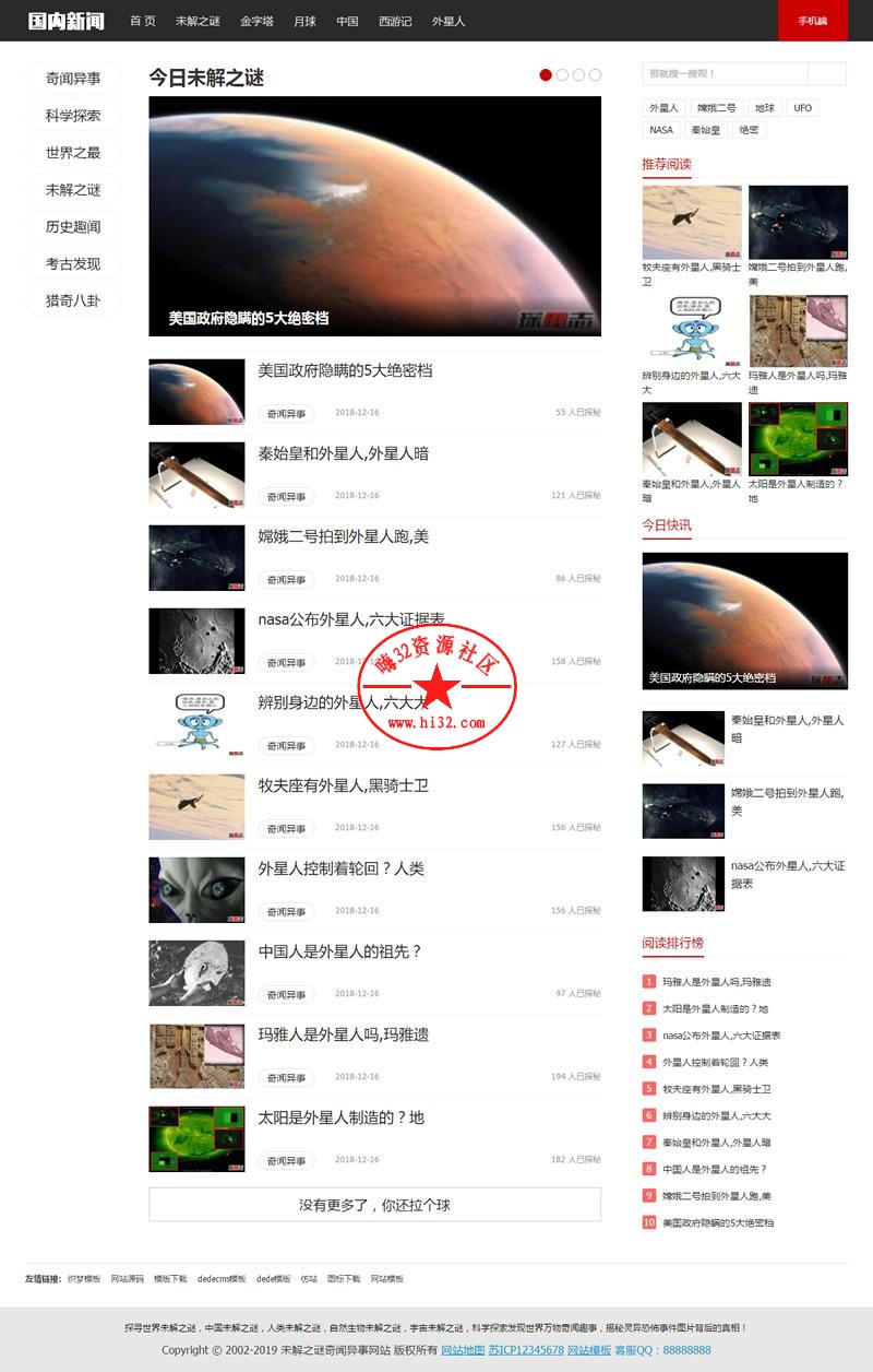 3、适用于未解之谜织梦模板、奇闻异事网站源码;