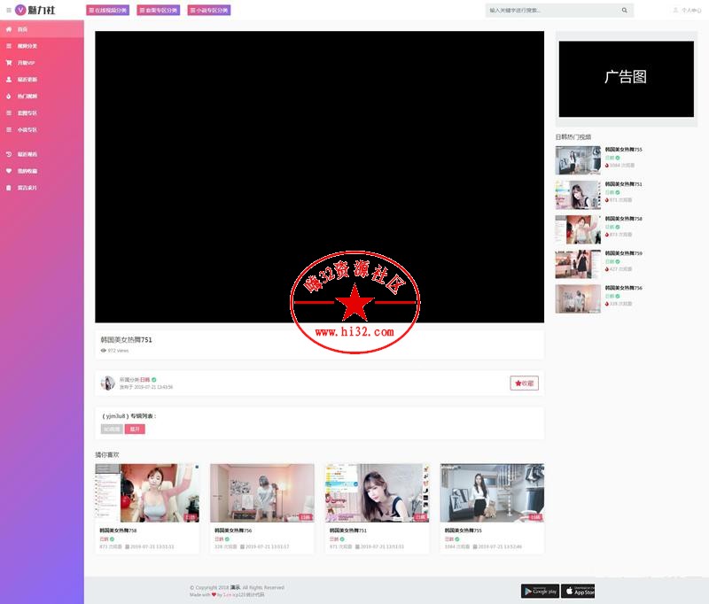 在线视频源码 苹果cmsV10x粉色魅力 视频图片小说综合站